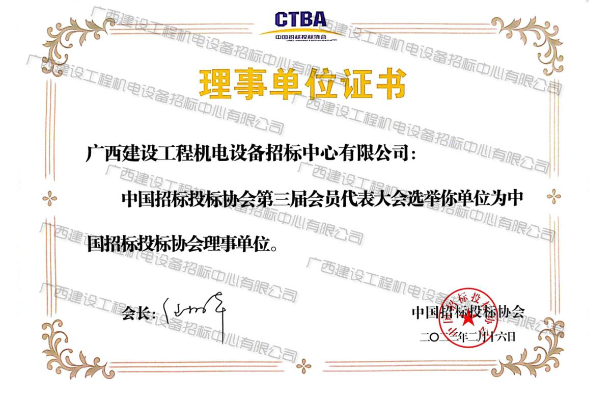 中國招標(biāo)投標(biāo)協(xié)會(huì)理事單位證書