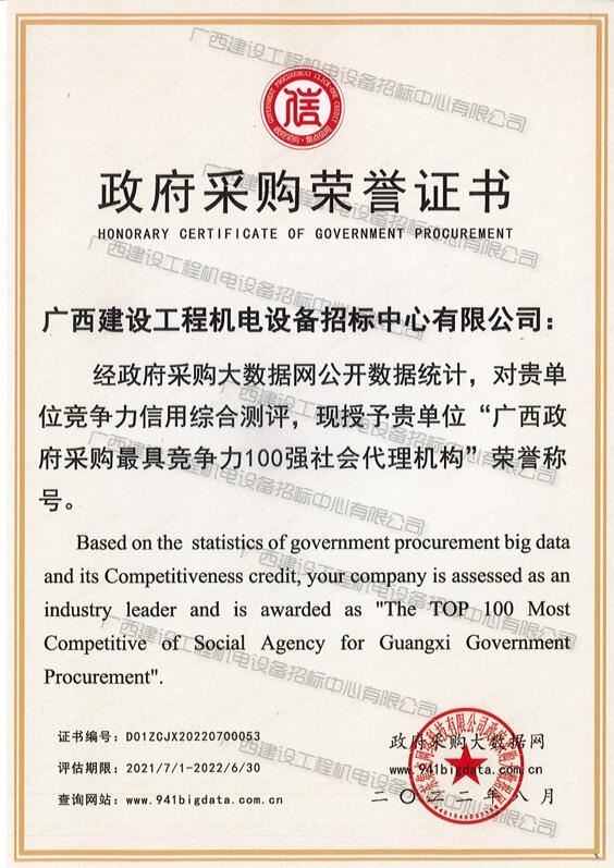 廣西政府采購最具競爭力100強社會代理機構